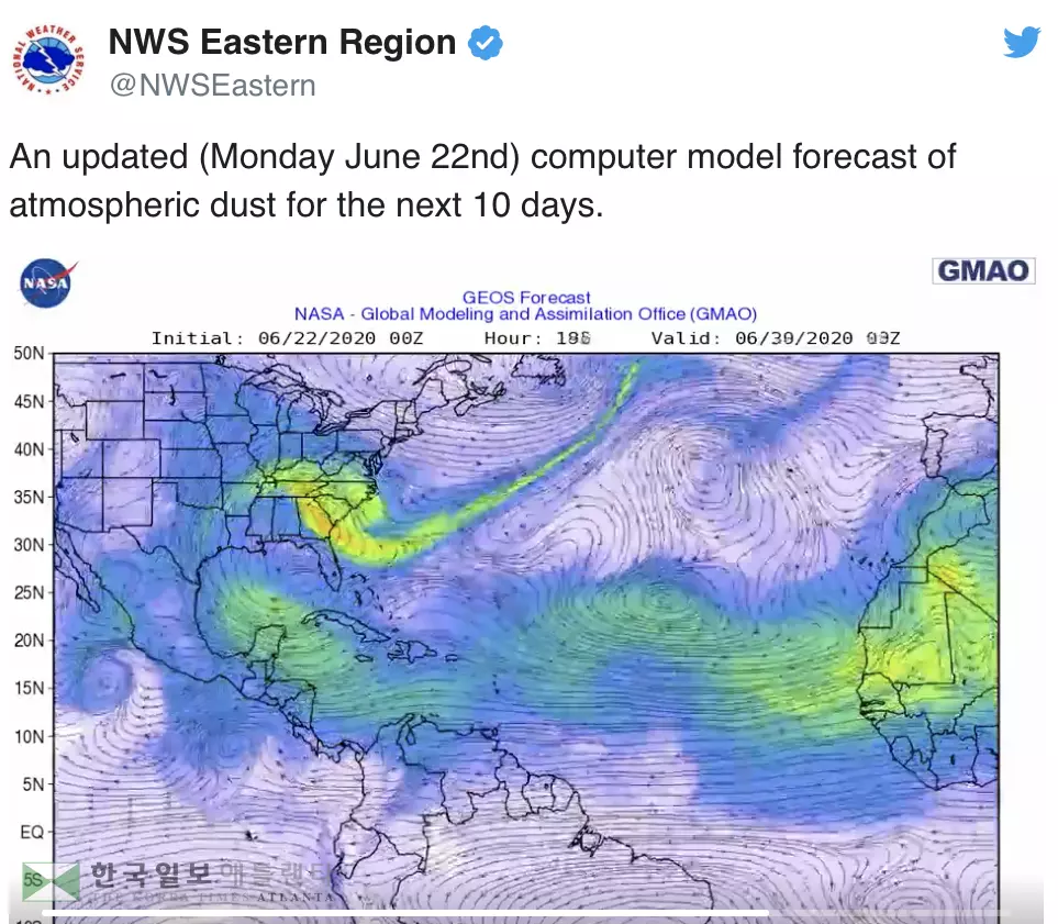 미 기상청은 이번 주말 조지아, 루이지애나, 앨라배마, 플로리다, 텍사스 등 먼지 구름에 영향권에 들 것이라고 밝혔다.