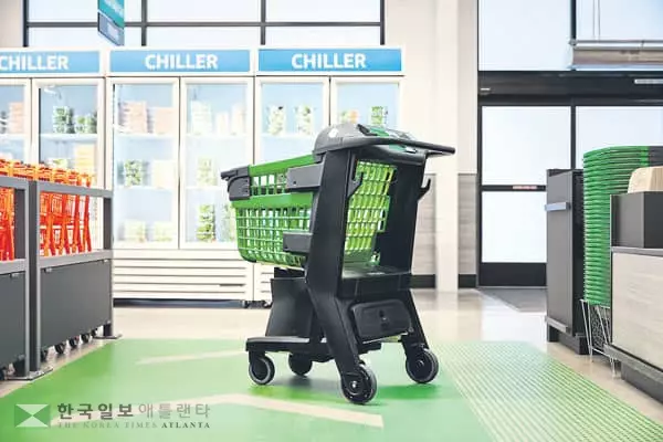 계산대 없는 무인 편의점 ‘아마존 고’를 선보인 아마존이 이번엔 계산이 필요 없는 ‘스마트 샤핑카트’를 내놨다. 아마존은 14일 샤핑객이 카트에 담는 상품을 스스로 감지해 자동으로 계산해주는 ‘아마존 대시 카트’를 공개했다. 내장된 카메라와 센서, 저울을 이용해 고객이 카트 안에 담은 제품을 인식하는 방식이다. 손잡이 근처 화면에는 카트 안에 든 상품 목록이 나타난다. 아마존 대시 카트는 올해 말 LA 지역에 새로 문을 여는 수퍼마켓에 처음 도입될 예정이다. [아마존]