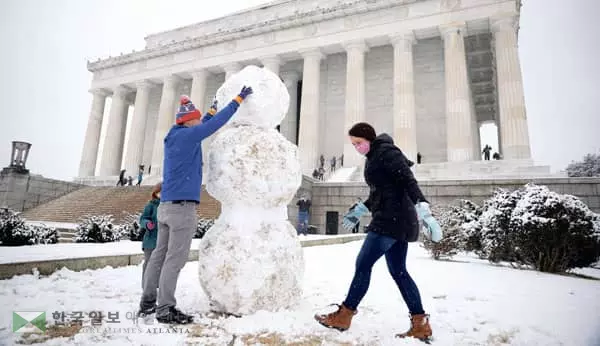 북동부 지역에 눈폭풍이 예고되면서 폭설 비상이 걸렸다. 국립기상청은 매사추세츠와 뉴욕, 펜실베니아 등에 걸쳐 31일 밤부터 적설량이 최고 1~2피트에 달하는 눈폭풍이 몰아닥칠 것이라고 예보했다. 워싱턴 DC 등에도 이날 오전부터 상당량의 눈이 내렸다. 31일 워싱턴 DC 링컨 기념관 앞에서 주민들이 눈사람을 만들고 있다. [로이터]