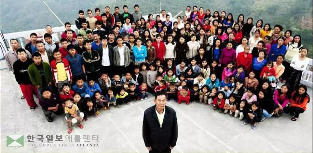아내 38명, 자녀 89명, 손주 33명 등을 둬 '세계 최대 가족'의 가장으로 불린 인도 남성 시온-아 차나(Zion-a Chana)가 13일 76세로 세상을 떠났다.
