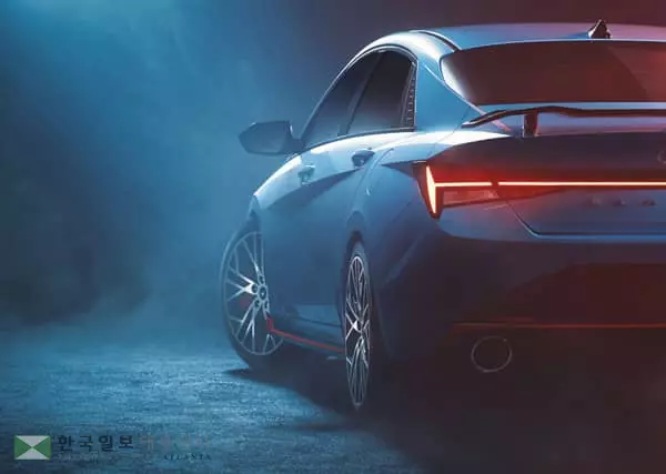 현대차는 22일 고성능 세단 모델 아반떼 N의 디자인 티저를 공개했다. 미국에서는 모델명 엘란트라 N으로 판매되게 된다.