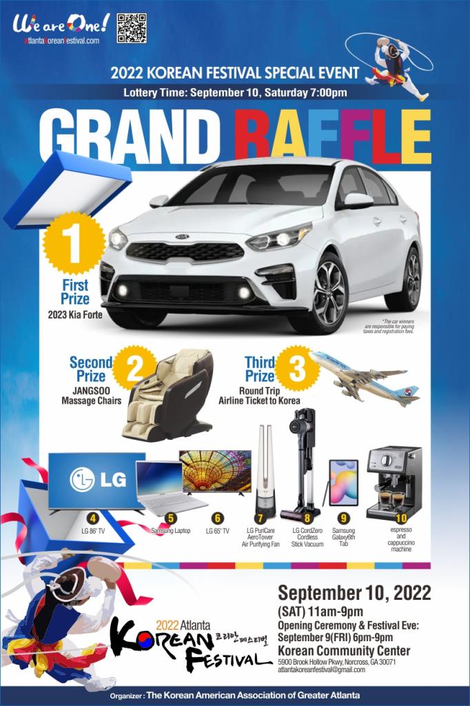 2022 코리안페스티벌 준비위원회가 오는 9월 9일-10일 노크로스 애틀랜타 한인회관에서 열리는 올해 페스티벌 참가자들에게 푸짐한 경품을 내걸고 참가를 독려하고 있다.