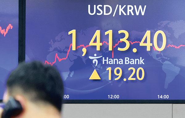 ![22일 서울외환시장의 원·달러 환율이 장중 1,413.40원을 가리키고 있다. [연합]](/image/fit/80452.webp)