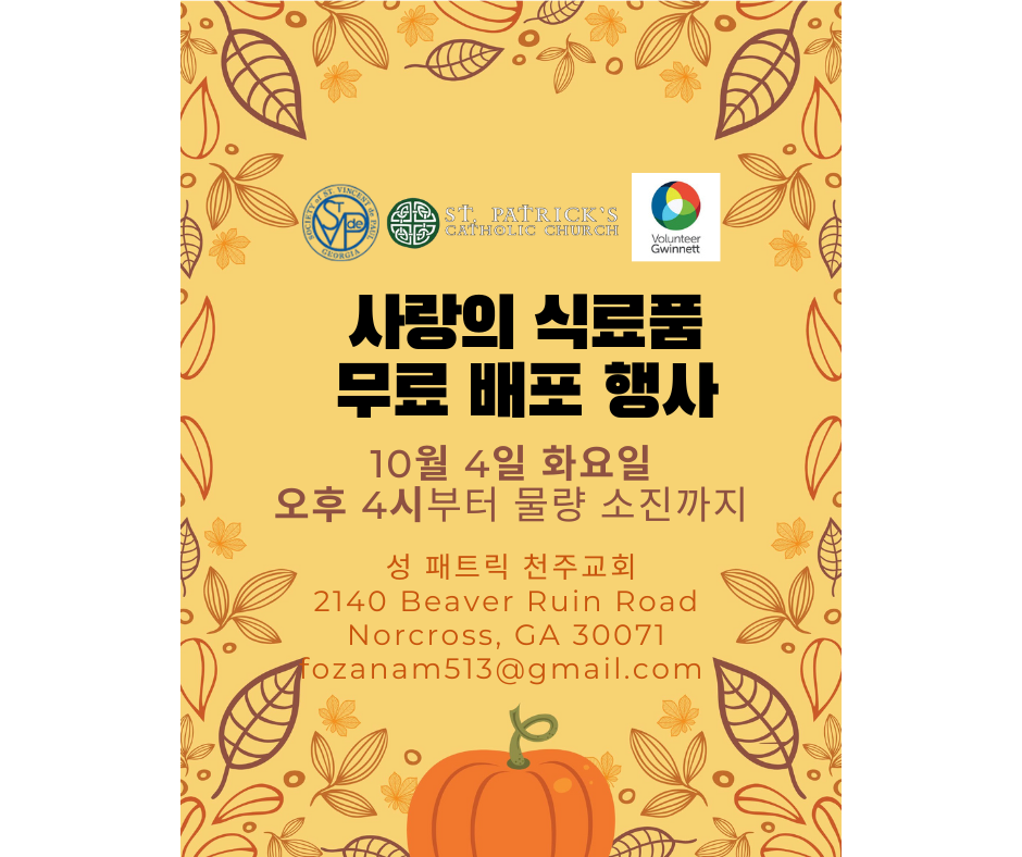 노크로스 성 패트릭 천주교회(St. Patrick Catholic Church)는 내달 4일 오후 4시부터 무료 식료품 나눔 행사를 개최한다.