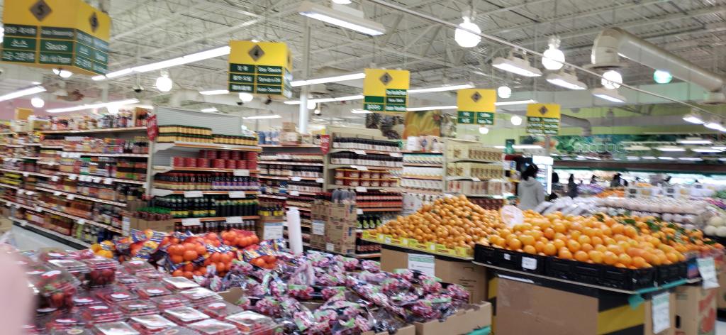 정육부는 양지 5.49, LA 갈비 13.99, 냉동삼겹살 5.99, 돼지체인갈비 3.99, 돼지목전지살 2.99, 닭가슴살 2.49, 양념닭사태살 2.99에 판매한다. 수산부는 노르웨이 고등어 2.49, 우나기 8.99, 머리새우 4.99, 오징어튜브 3.99에 판매한다.