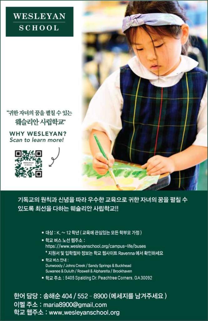 애틀랜타의 사립 명문 웨슬리안 스쿨(Wesleyan School)이 2023년도 신입생을 모집하고 있다.
