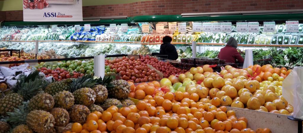 농산, 수산, 축산 대표상품으로 스페인 샤론단감 박스 12.99, 한국산 제주 감귤 6.99, 블루제이 잎달린 만다린 9.99, 깐마늘 17.99, 대파 1.79, 노란양파 6.99, 떡국 국물내기용 한국산 다시멸치 17.99, 한국산 굴 29.99, 한국산 영광굴비 9.99, 생 삼겹살 5.99, 소찜갈비 9.99, 뼈없는 훈제 오리 슬라이스 19.99에 판매한다.