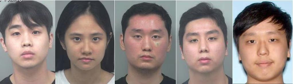 채널 2 액션 뉴스 보도에 의하면 수요일 밤 체포된 용의자들은 이준현(22), 이준호(26), 이현지(25), 이가원(26)으로 확인됐다. 이들은 각각 살인, 억류, 사망 은폐 혐의로 기소됐으며, 온라인 기록에 따르면 이준호, 이준현, 이가원은 증거인멸 혐의가 추가됐다. 신원이 공개되지 않은 14세 소년도 살인 혐의로 기소됐다고 뉴스 방송국이 보도했다. 제6의 인물인 에릭 현(26)도 기소됐으나 시신이 발견되기 전 입은 부상으로 병원에 입원 중이어서 제일 나중에 구금됐다.