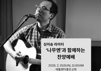 2월 15일 11시 개최 따뜻하고 서정적인 음색으로 많은 이들의 영혼을 어루만져 온 싱어송라이터 ‘나무엔’이 애틀랜타를 찾는다. 애틀랜타 좋은교회는 오는 2월 15일(주일) 오전 11시, 나무엔과 함께하는 특별 찬양 예배를 개최한다고 밝혔다.이번 예배는 ‘나무엔’ 특유의 어쿠스틱한 감성과 깊이 있는 신앙 고백이 담긴 찬양들로 꾸며질 예정이다. 지친 일상 속에서 하나님의 위로와 평안을 갈구하는 성도들에게 영적인 쉼과 회복의 시간이 될 것으로 기대된다.애틀랜타 좋은교회 정연권 목사는 "정갈한 선율 속에 담긴 진심 어린 가사가 우