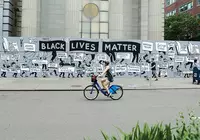 미국에서 전국적인 인종차별 항의 시위를 촉발시킨 흑인 조지 플로이드 사망 사건과 관련 정의를 촉구하고 경찰의 잔혹성을 알리는 대형 드로잉 벽화가 맨하탄 유니온 스퀘어에 등장했다. 상단에 ‘흑인 생명도 소중하다’(Black Life Matters)란 제목으로 보도 위에 설치된 벽화에는 조지 플로이드와 아마두 디알로, 마이클 브라운 등 경찰에 희생된 흑인들의 이름이 적혀있다. 11일 보행자들과 자전거를 탄 시민이 벽화를 지나치고 있다. <AP> 맨하탄 유니온 스퀘어에“ 흑인 생명도 소중” 대형벽화