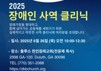 26일 둘루스한인침례교회서 애틀랜타 한인교회협의회가 주최하고 장애인분과위원회가 주관하는 ‘발달장애 사역 클리닉’이 오는 6월 26일 오전 10시 둘루스 한인침례교회(담임목사 전웅제)에서 열린다.이번 클리닉은 ‘교회에 방문한 장애인과 그 가족을 맞이하는 것’과 ‘교회 식구 중에 장애가 있는 가정을 위한 배려’를 위한 한인교회 협의회 장애인 분과위원장 김창근 목사와 함께 하는 모임이다.교회 안의 장애가정을 환대하고, 함께 살아가는 공동체를 세워가기 위한 실제적이고 따뜻한 사역 클리닉이다.참가 대상은 목회자, 사역자, 교사, 성
