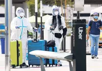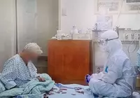 방호복 입고 할머니와 화투
