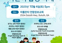 내달 4일 연합장로교회서 오는 10월 4일, 오후 5시, 아틀란타 연합장로교회 본당에서 제9회 아틀란타 어린이합창축제가 열린다.이번 합창제 참가팀은 연합장로교회 엔젤워쉽팀 & 어린이 합창단(We are a church, 아름답게 하리라, 32명), 애틀란타 섬기는교회 어린이합창단(My Tribute, 구원열차, 44명), 포도나무 합창단(Festival Sanctus, 별, 20명), 아틀란타 벧엘교회 어린이 합창단(주의 옷자락 만지며, 나로부터 시작되리, 32명), 애틀란타 프라미스 어린이 합창단(Holy foreve