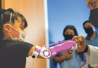 절단 장애 아동에게 희망을… “슈퍼 히어로로 변신을 축하해”절단 장애 아동에게 희망을… “슈퍼 히어로로 변신을 축하해” 한쪽 팔이 없는 4세 소녀 몬세라스 몬타네즈가 지난달 6일 멕시코 시우다드 후아레스의 한 병원에서‘스파이더우먼’ 디자인의 의수를 기증해준 정형외과 의사 오스카 후아레스와 주먹인사를 하고 있다. 후아레스는 팔이 없는 저소득층 어린이들에게 슈퍼히어로 디자인의 3D 의수를 기증해 왔다. [로이터]