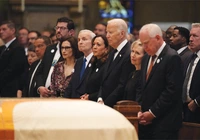 [로이터] 정치적 총격 테러에 의해 숨진 민주당 소속 멜리사 호트먼 미네소타 주 의원 장례식에 조 바이든 전 대통령과 카멀라 해리스 전 부통령이 나란히 참석했다. 호트먼 의원의 장례식은 28일 미니애폴리스에서 열렸다. 호트먼 의원은 지난 14일 자택에서 경찰관으로 가장한 밴스 볼터(57·구속)의 총격을 받고 남편과 함께 목숨을 잃었다. 볼터는 트럼프 대통령 지지자이자 낙태 반대 운동에 관여해온 것으로 드러났다.