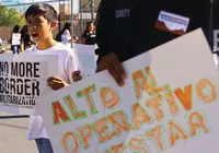 지난 1일 텍사스주 앨파소 지역에서 이민자들이 텍사스 주정부의 ‘론스타 작전’ 중단을 촉구하는 시위를 벌이고 있다. 텍사스 주정부는 주방위군과 함께 지난 2021년부터 이같은 작전명으로 국경 이민 단속을 벌여왔는데 최근 엘파소 인근 국경 다리에서 주방위군이 22세 멕시코 남성에게 총격을 가해 부상을 입히는 사건이 발생하면서 항의시위를 촉발했다. [로이터]