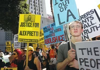 이민단속 항의시위 확산차 창문 깨고 부녀 체포5세 아이와 아빠는 석방 지난달 30일 LA 다운타운에서 무차별 이민단속 반발 시위 참가자들이 피켓을 들고 집회를 진행하고 있다. [로이터] 미네소타주 미니애폴리스에서 발생한 이민 당국의 총격 사건 이후 당국이 2세 유아까지 구금하면서 여론이 급속도로 악화하고 있다. 미니애폴리스를 넘어 LA와 뉴욕·워싱턴 DC 등 미 전역으로 시위가 확산하며 갈등이 최고조에 이르고 있다. 1일 로이터통신 등에 따르면 연방법원 프레드 비에리 판사는 전날 연방 이민세관단속국(ICE)에