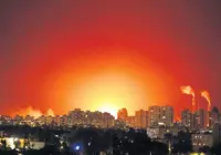 팔레스타인 시위대와 이스라엘 경찰의 충돌 이후 이스라엘군과 가자지구 무장 정파 하마스 간 포격 세례와 대규모 공습 등 무력 충돌이 계속돼 전운이 감돌고 있다. 11일까지 이틀간 서로를 향한 양측의 로켓포 발사가 1,000여 발에 달하면서 30여 명이 사망하고 수백명이 부상했으며, 이스라엘은 휴교령을 전국으로 확대하는 등 일촉즉발의 상황이 계속되고 있다. 11일 하마스 로켓 공격을 받은 이스라엘의 에너지 시설 상공이 폭발 섬광으로 온통 붉게 물들어 있다. [로이터]이스라엘 전운… 포격전 섬광 붉게 물든 밤하늘