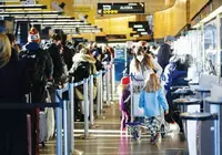 27일 워싱턴주 시애틀-타코마 공항에서 항공편이 취소, 지연 되자 승객들이 카운터에서 기다리고 있다. [로이터]오미크론 변이에 악천후까지 겹치면서 크리스마스 연휴를 덮친 항공대란이 27일까지 나흘째 이어졌다. 항공편 추적 사이트 ‘플라이트어웨어’는 이날 오후 2시40분 현재 미국에서 항공기 1,090편의 운항이 취소됐다며 전 세계에서 결항한 2,743편 중 약 40%에 해당한다고 밝혔다.