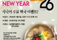 1일 11AM-2PM 둘루스 푸드코트 2026년 새해를 맞아 남대문마켓 둘루스점(3825 Shackleford Rd.)이 시니어 무료 떡국 이벤트를 실시한다.65세 이상 시니어를 대상으로 하는 무료 나눔 행사는 이날 오전 11시부터 오후 2시까지 푸드코트에서 진행된다.남대문마켓은 “지난 한 해 남대문 마켓을 사랑해주신 고객님들께 감사드리며 새해 첫날 어르신들께 따뜻한 떡국을 대접한다”며 “오셔서 새해의 정을 나누시길 바란다”고 밝혔다. 박요셉 기자