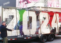 뉴욕 새해맞이 카운트다운 행사에 등장할‘2024’ 대형사인이 20일 맨하탄 타임스스퀘어에 도착했다. 2024 대형사인은 올해의 마지막 날인 31일 밤부터 타임스스퀘어에서 펼쳐지는 새해맞이 행사에 등장하기 앞서 이날 뉴욕시민들에 모습을 드러냈다.<로이터> 매년 세계적 관광 명소 맨해턴 타임스스퀘어 광장에서 열리는 유명 신년행사를 위해 뉴욕시가 본격 준비에 나서 새해를 알리는‘2024’ 대형 전광판 패널이 행사 장소에 등장했다. 기아 후원으로 588개의 LED 전구로 만든 7피트 높이의 ‘2024’ 숫자 패널이 기아
