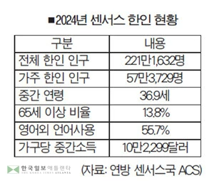 미국내 전체 한인 인구가 220만 명 선을 넘어 약 221만 명에 달하는 것으로 추산됐다.